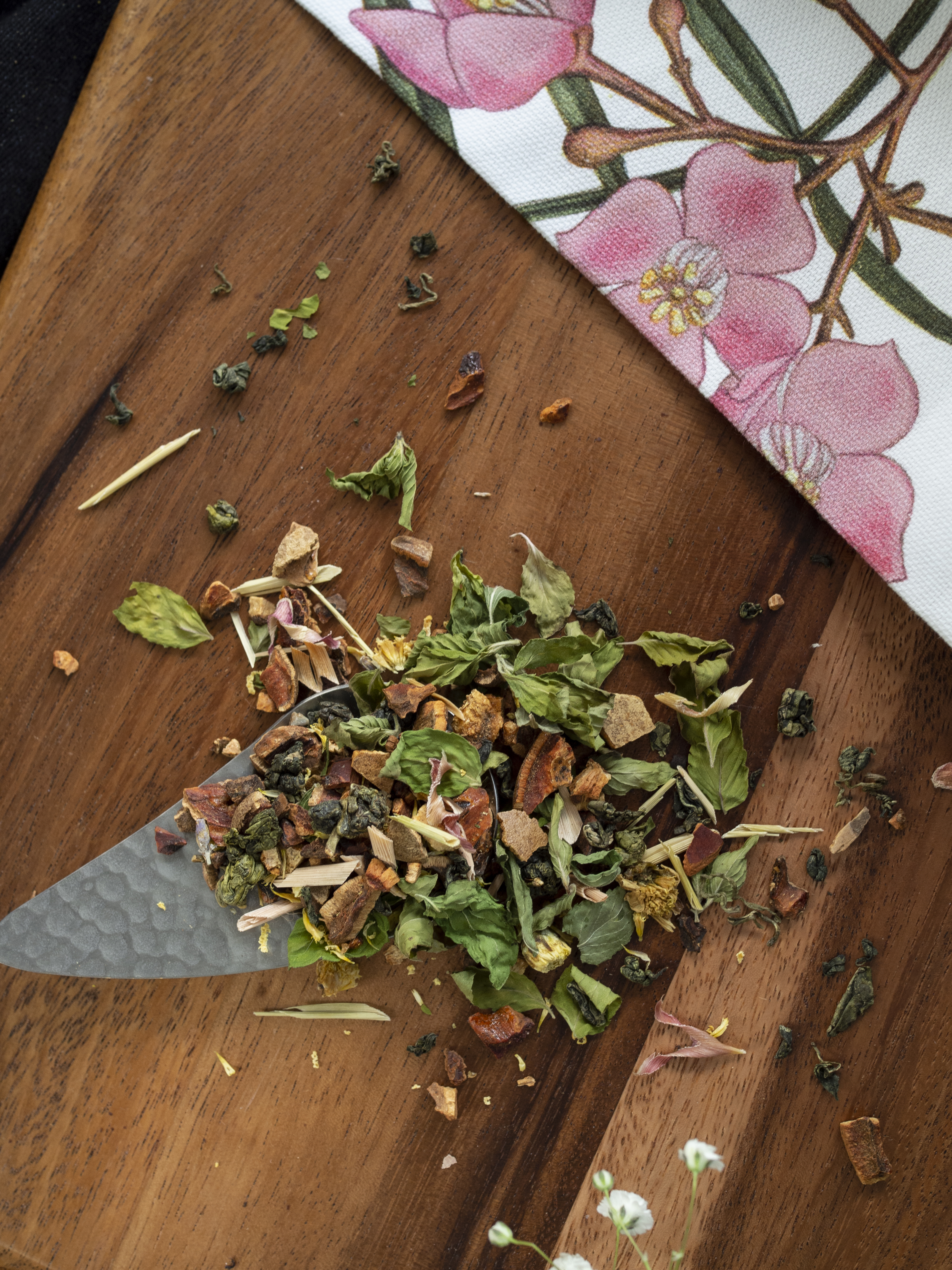 Actually, mint tea has been a favorite of ours ever since visiting Morocco, where they use fresh mint leaves for brewing. We wanted to use whole mint leaves like we experienced in Morocco, but we couldn’t find what we needed. So we had to dry our own mint to get those perfect whole leaves we wanted. We discovered it’s quite a delicate process to achieve beautiful mint leaves—but how could we settle for anything less?